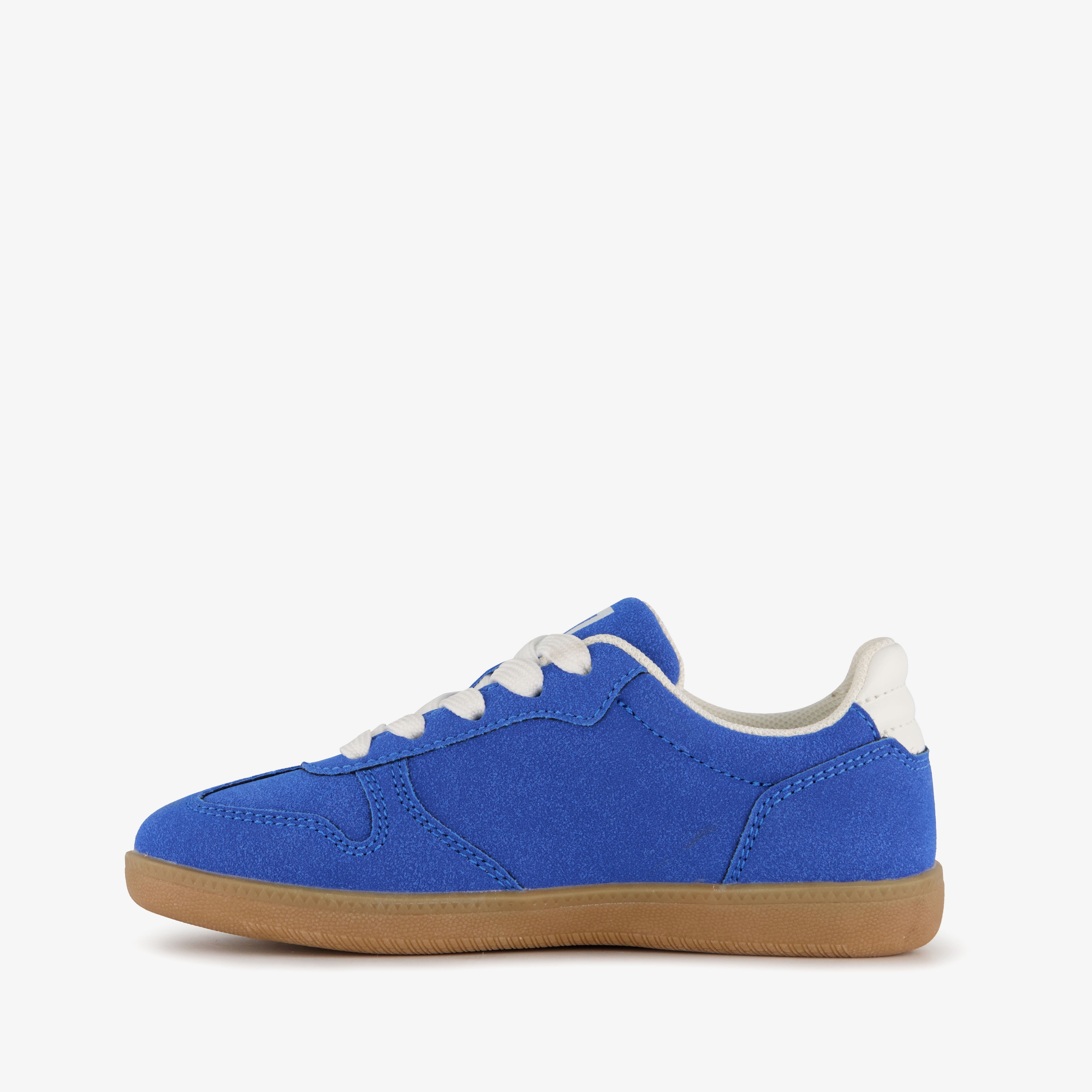 Blauwe Blue Box sneakers voor jongens. Het buitenwerk is gemaakt van imitatiesuède, het binnenwerk is van textiel en de stevige profielzool is van rubber. Voorzien van een vetersluiting en een vaste binnenzool van textiel. Deze gave sneakers hebben witte details en een bruine buitenzool.
