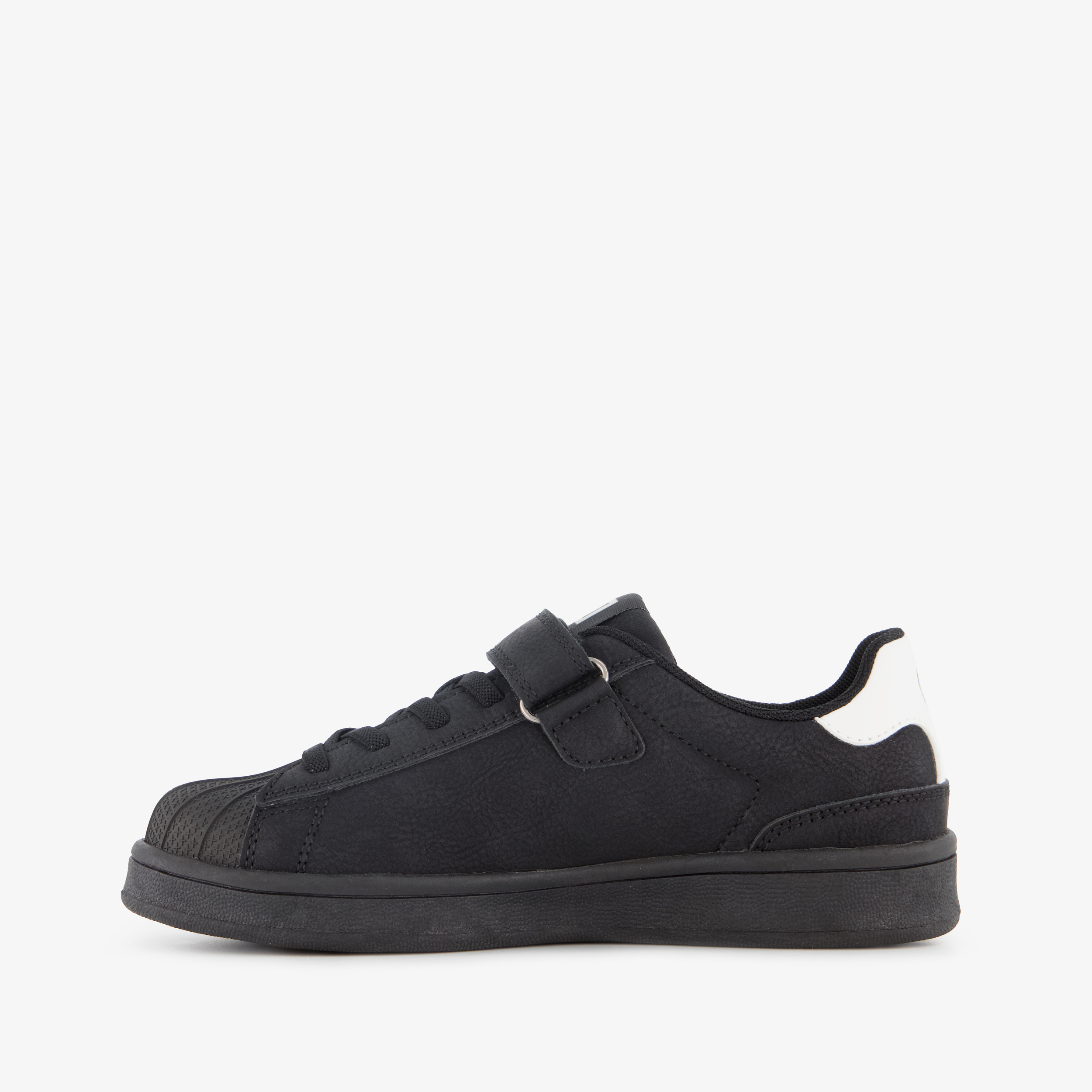 Zwarte sneakers voor jongens van Blue Box. Gemaakt van imitatieleer met een binnenwerk van textiel en een stevige profielzool van rubber. Voorzien van elastische veters, een klittenbandsluiting voor een optimale pasvorm en een comfortabele binnenzool van textiel. De sneakers hebben witte accenten en opdrukken van smileys op het bovenwerk. De binnenzool is niet uitneembaar.