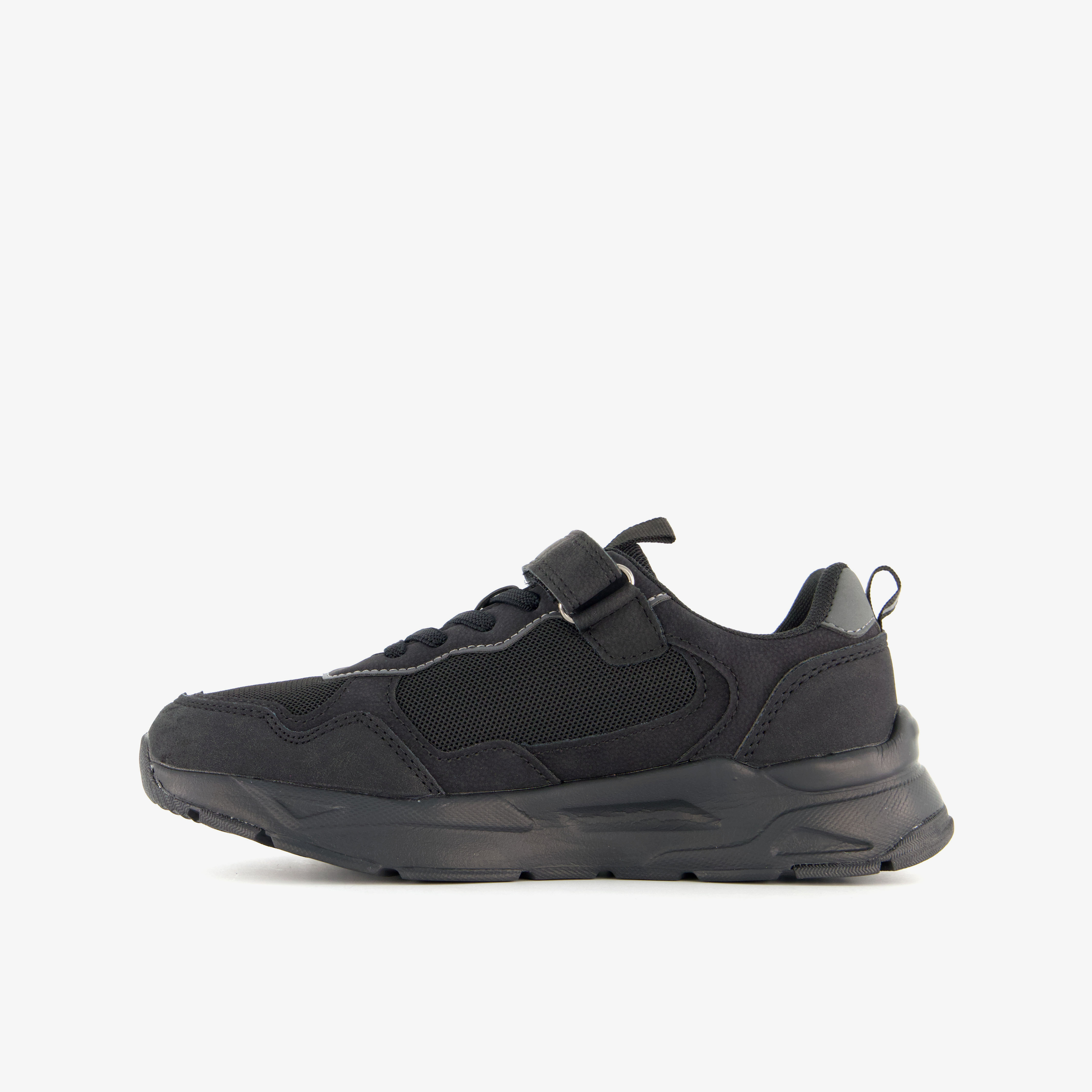 Zwarte jongens sneakers van Blue Box. Het buitenwerk is gemaakt van textiel en imitatieleer, het binnenwerk van textiel en de stevige zool met profiel van rubber. Voorzien van elastische veters met een klittenbandsluiting en aantreklusjes op de hak en de tong. De sneakers hebben een comfortabele binnenzool van textiel. Deze is niet uitneembaar.