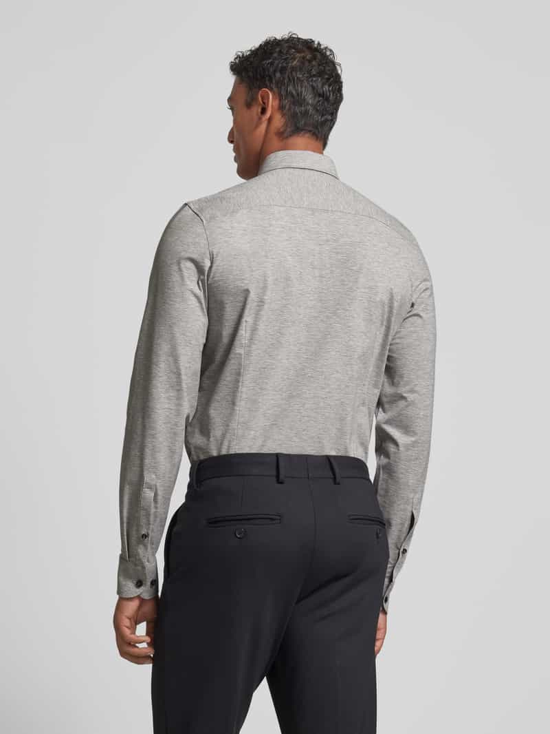 Zakelijk herenoverhemd van OLYMP Level Five;Mix van katoen en elastaan;Body fit;Model ‘New York’;Melangelook;Kentkraag;Doorknoopsluiting;Sportmanchetten;Ruglengte bij maat 40: 77 cm;Schouderbreedte bij maat 40: 43 cm;Mouwlengte bij maat 40: 68 cm