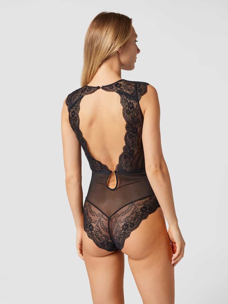 Body van LASCANA;Materiaalmix met stretch;Nauwsluitend model;Gebloemd kant;Ronde hals;Mouwloos;Diep rugdecolleté