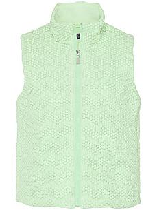 Bodywarmer van MYBC met staande kraag. Bijzonder cool en toptrendy van microvezel van 100% polyamide met speciale structuur. Met hoog te sluiten rits voor en zakken in de zijnaden. Voering van 100% polyester. Lengte ca. 54 cm. Machinewasbaar. fijnwas tot 30°. chloorbleken niet mogelijk. koud strijken. chemische reiniging, veilig. drogen in de droger niet mogelijk. 36, 38, 40, 42, 44, 46, 48