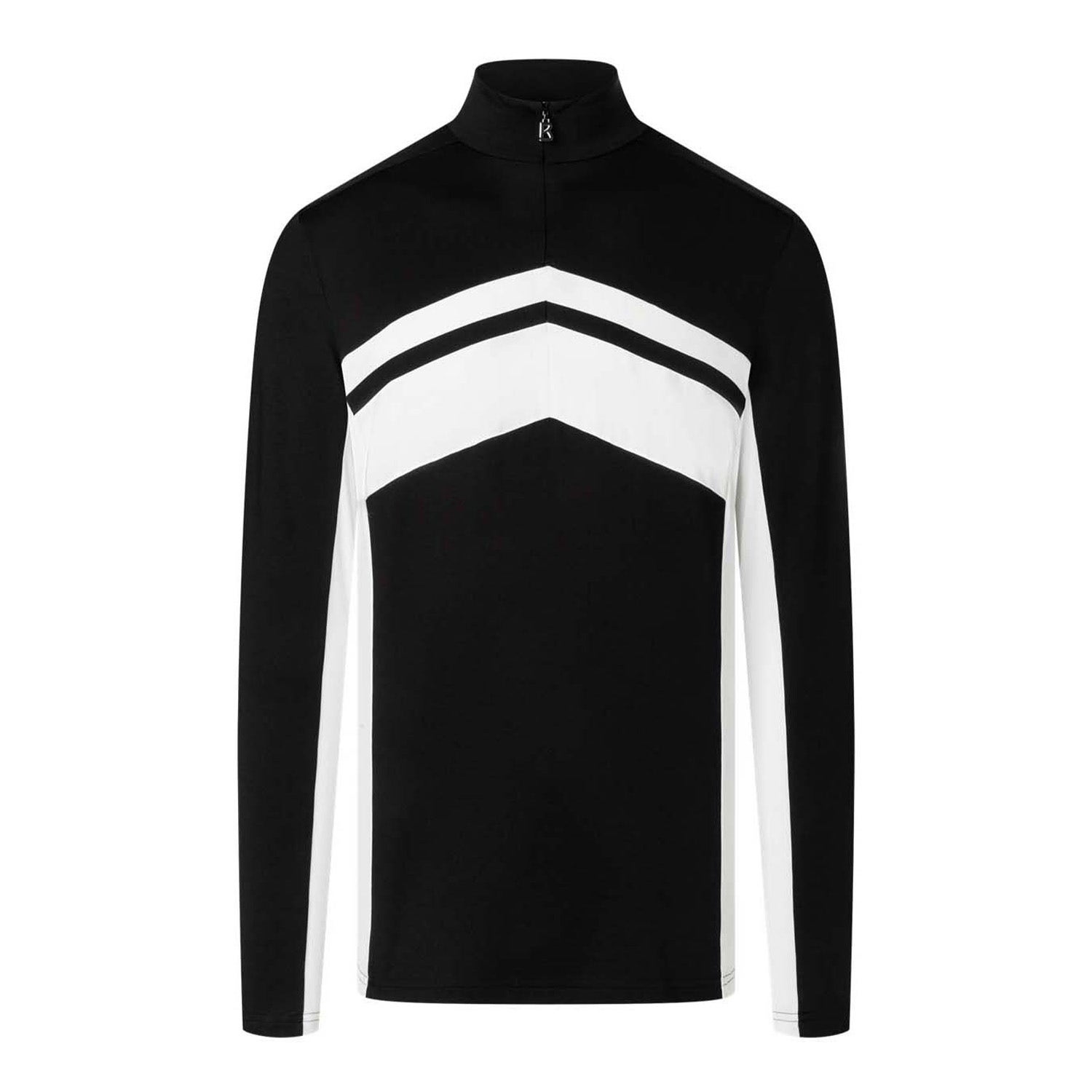 De casual First layer Elio met contrastieve details en zijpanden van elastische ribstof is afgerond met een ritssluiting met verdekt stiksel, een opstaande kraag en een kenmerkend B-logo. Deze stijlvolle skipully kenmerkt zich door ademend technisch materiaal.