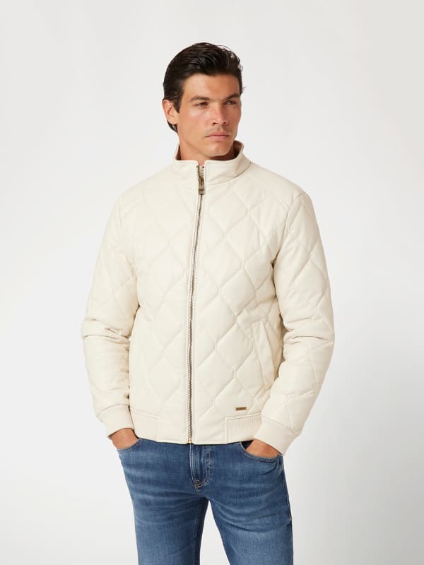 Gewatteerd bomberjack van kunstleer met synthetische vulling.Hoge kraag en lange mouwen.Zijzakken en logo op de achterkant.Regular fit.Ritssluiting.Het model draagt maat M.Zie onze bovenstaande maattabel.Totale lengte: 68,5 cm / 27 inch.Mouwlengte: 66,3 cm / 26,1 inch.Valt normaal op maat.