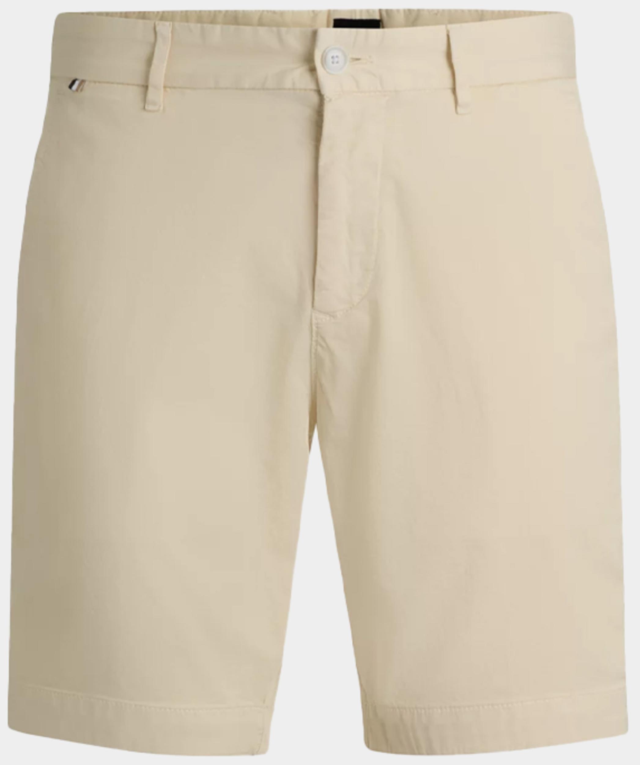 Deze witte korte broek van BOSS Black is een must-have voor de lente en zomer. De broek is gemaakt van 98% katoen en 2% elastaan, waardoor hij comfortabel en licht is. De regular fit zorgt voor een perfecte pasvorm, terwijl de stretchstof ervoor zorgt dat je vrij kunt bewegen. De korte broek is voorzien van een rits, steekzakken aan de zijkanten en een achterzak. Hierdoor kun je gemakkelijk je essentials meenemen. Deze broek is veelzijdig en kan zowel casual als wat chiquer gedragen worden, afhankelijk van hoe je hem combineert. Draag hem bijvoorbeeld met een basic T-shirt en sneakers voor een relaxte look, of met een polo en instappers voor een nettere uitstraling. Was de broek op maximaal 30°C om de kwaliteit te behouden. Met deze witte korte broek van BOSS Black ben je helemaal klaar voor de warme dagen!