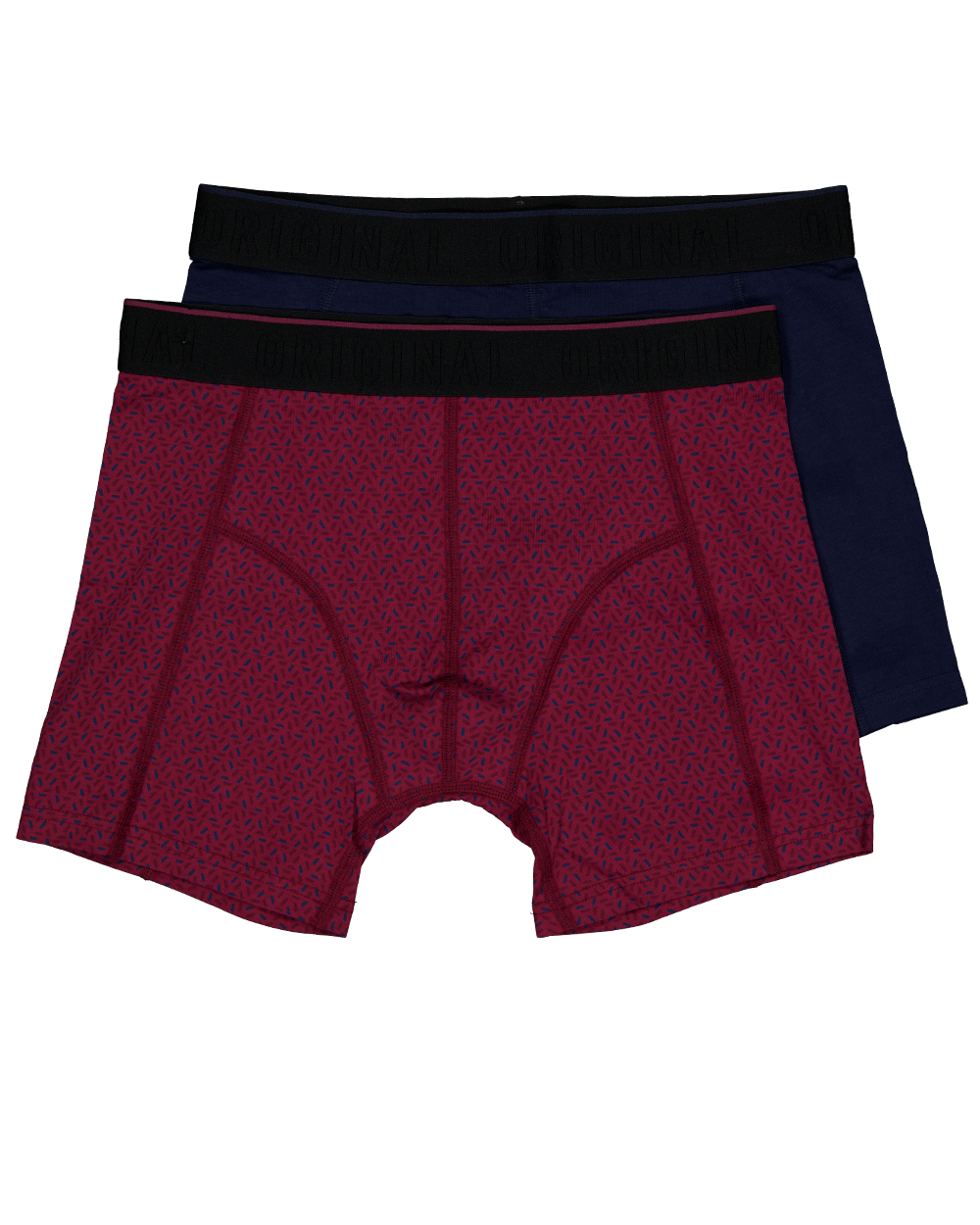 Deze extra lange boxershorts voor mannen zijn uitgevoerd in de kleur rood. Ze zijn gemaakt van een zachte stof met 95% katoen en 5% elastaan, wat zorgt voor optimaal draagcomfort. Je ontvangt deze boxers in een set van twee stuks.