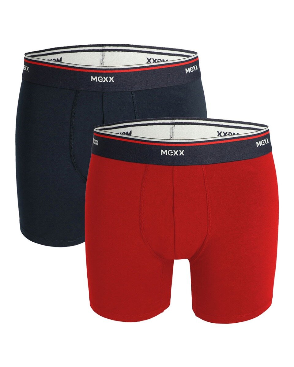 Een set van twee comfortabele Mexx boxers in de kleuren Marineblauw en Rood. De boxers hebben een band met Mexx logo.