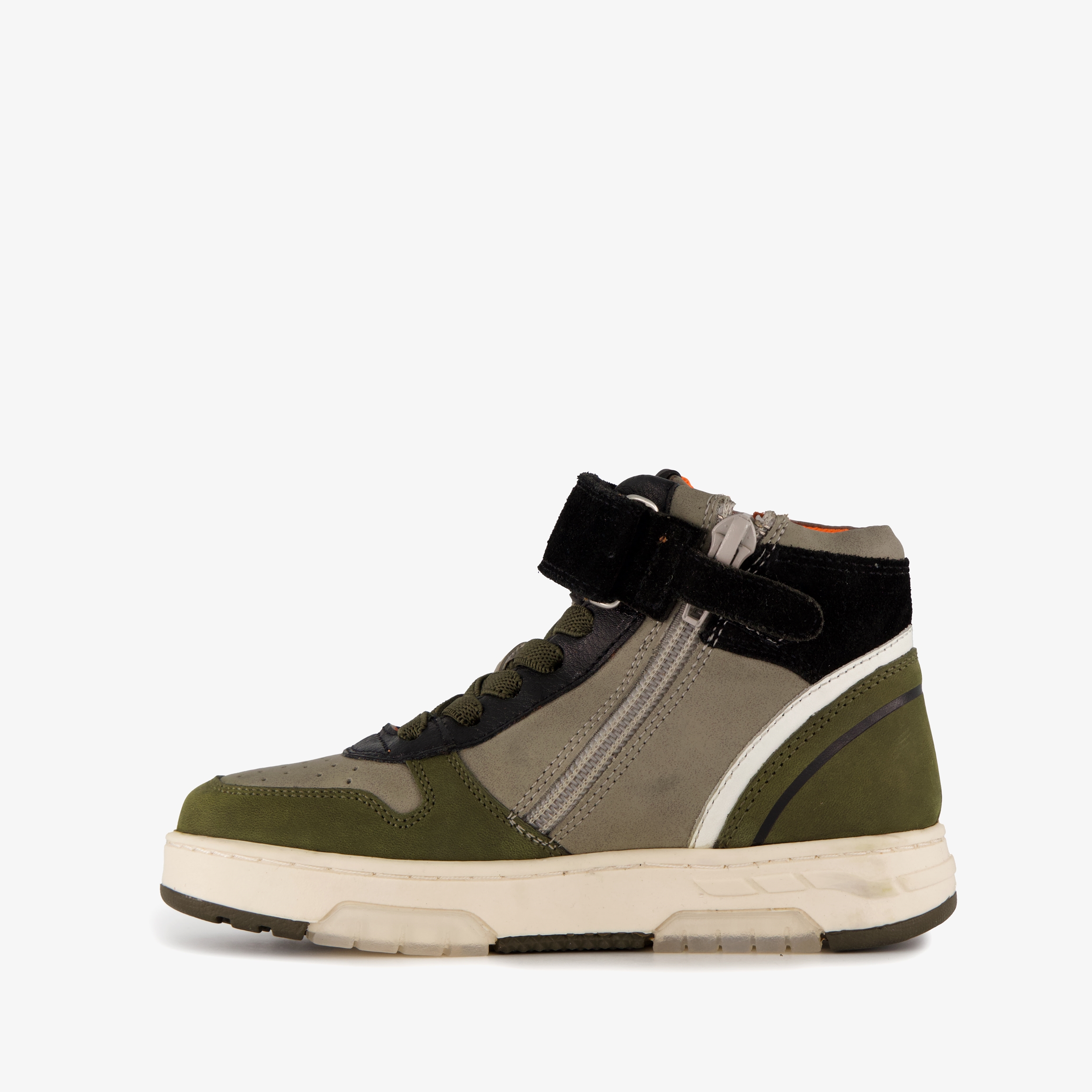 Hoge, groene sneakers voor jongens van Braqeez. Het buitenwerk is gemaakt van leer, het binnenwerk van textiel en de stevige zool met profiel van rubber. Voorzien van elastische veters, een klittenbandsluiting en een rits aan de binnenzijde voor een optimale pasvorm. Het comfortabele voetbed van textiel is uitneembaar zodat je eventueel jouw eigen zolen in de schoenen kan dragen. De schoenen worden versierd met oranje, zwarte, beige en witte accenten.