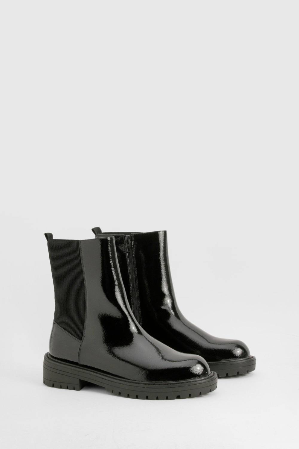 Home » Dames » Schoenen » Enkellaarzen » Brede Pasvorm Enkeldetail Getextureerde Glanzende Chelsea Laarzen, Black