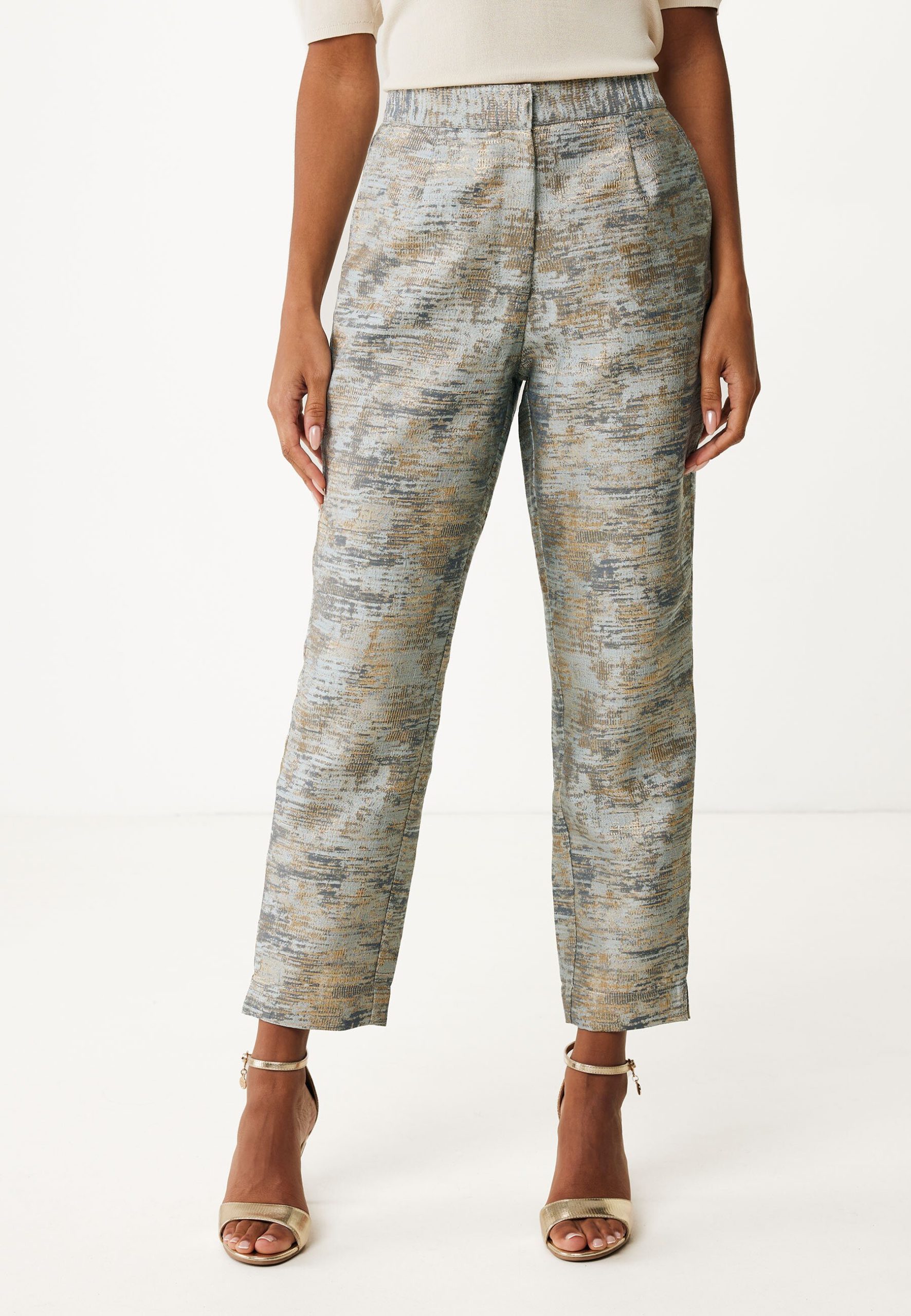 Ervaar de veelzijdigheid van deze Jacquard broek in een subtiele multicolor geometrische print. Gemaakt van een mix van polyester, katoen en metallic vezels, biedt deze broek een comfortabele en lichtgewicht pasvorm. Combineer deze stijl met een eenvoudige witte blouse voor een elegante uitstraling. Ontdek meer overonze damescollectie.