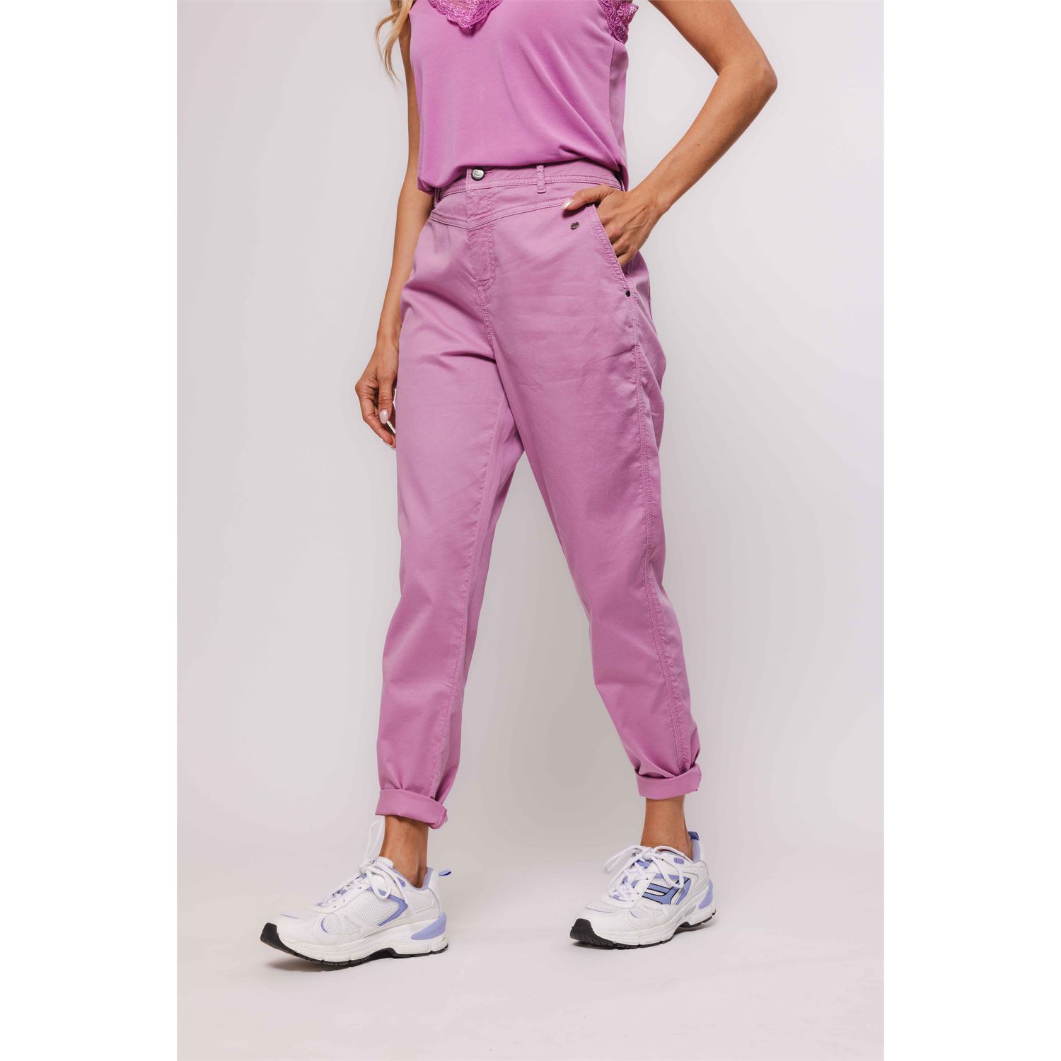 Broek van katoen met een beetje stretch voor optimaal draagcomfort. Fit met hoge taille en taps toelopende pijp.
