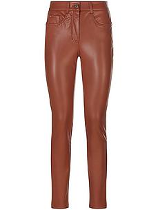 BASLER broek van imitatieleer. Strakke pasvorm met een doorgestikte zoom. In een 5-pocket snit met een label knoop en zadel sectie. De elastische tailleband met riemlussen, rits en knoop zorgt voor een comfortabele pasvorm. Dankzij de kreukherstellende eigenschappen ziet de broek er altijd netjes uit. Zonder riem. 100% polyurethaan. Binnenbeenlengte ca. 80 cm in normale maat, ca. 76 cm in cropped maat. Voetwijdte ca. 28 cm. Wij adviseren deze broek met de hand te wassen. handwas. chloorbleken niet mogelijk. niet strijken. niet chemisch te reinigen. drogen in de droger niet mogelijk. 18, 19, 20, 21, 22, 23, 24, 38, 40, 42, 44, 46, 48, 50, 52