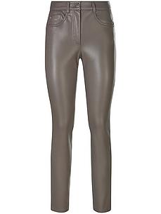 BASLER broek van imitatieleer. Strakke pasvorm met een doorgestikte zoom. In een 5-pocket snit met een label knoop en zadel sectie. De elastische tailleband met riemlussen, rits en knoop zorgt voor een comfortabele pasvorm. Dankzij de kreukherstellende eigenschappen ziet de broek er altijd netjes uit. Zonder riem. 100% polyurethaan. Binnenbeenlengte ca. 80 cm in normale maat, ca. 76 cm in cropped maat. Voetwijdte ca. 28 cm. Wij adviseren deze broek met de hand te wassen. handwas. chloorbleken niet mogelijk. niet strijken. niet chemisch te reinigen. drogen in de droger niet mogelijk. 20, 24, 38, 42, 44, 46, 48, 50, 52
