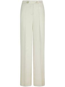 Broek van FADENMEISTER BERLIN met wijde pijpen. Wordt met 2 knopen gesloten. Steekzakken en een doorgestikte zoom vormen praktische details. Het design wordt perfect afgerond door chique figuurnaden en persplooien. Deze broek is altijd goed voor een elegante stijl op kantoor of voor vrijetijdslooks. 70% lyocell, 30% linnen. TENCEL™-lyocell is een geregenereerde cellulosevezel. Gecertificeerd volgens Standard 100 door OEKO-TEX®. Binnenbeenlengte ca. 80 cm. Voetwijdte ca. 62 cm. Machinewasbaar. fijnwas tot 30°. chloorbleken niet mogelijk. koud strijken. chemische reiniging. drogen in de droger niet mogelijk. 38, 40, 44