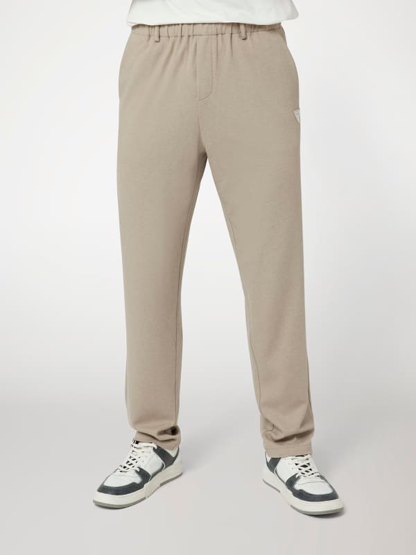 Chino van gemengde wol met rechte broekspijp en zijzakken.Kleine driehoek logopatch.Normale taille met comfortabele elastische tailleband.Regular fit.Het model draagt maat M.Lengte zijkant: 105 cm / 41,3 inch.Zie onze bovenstaande maattabel.