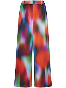 Broek van TALBOT RUNHOF X PETER HAHN met een voorgevormde tailleband, een metalen schuif met tegenknoop aan de binnenkant, riemlussen, wijd uitlopende pijpen, schuine zakken aan de voorkant en een decoratieve achterzak. Binnenbeenlengte ca. 82 cm. Voetwijdte ca. 64 cm. 100% viscose. Deze broek is machinewasbaar. fijnwas tot 30°. chloorbleken niet mogelijk. warm strijken. chemische reiniging. drogen in de droger niet mogelijk. 38, 40, 42, 44, 46, 48