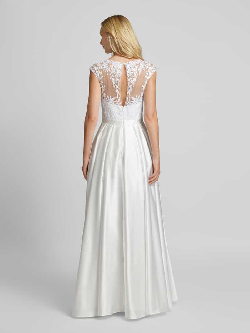 Bruidsjurk van Mascara voor dames;Look: effen;Pasvorm/model: getailleerd;Lengte: knielang;Hals: V-hals;Applicatie: Siersteentjes, gebloemde kant;Details: semi-transparant bovenmateriaal, details: ;Slu…Bruidsjurk van Mascara voor dames;Look: effen;Pasvorm/model: getailleerd;Lengte: knielang;Hals: V-hals;Applicatie: Siersteentjes, gebloemde kant;Details: semi-transparant bovenmateriaal, details: ;Sluiting: Haak- en naadritssluiting;Model bandjes: brede bandjes;Materiaal: Polyester;Totale lengte bij maat 36: 102 cm;Borstomvang bij maat 36: 40 cm