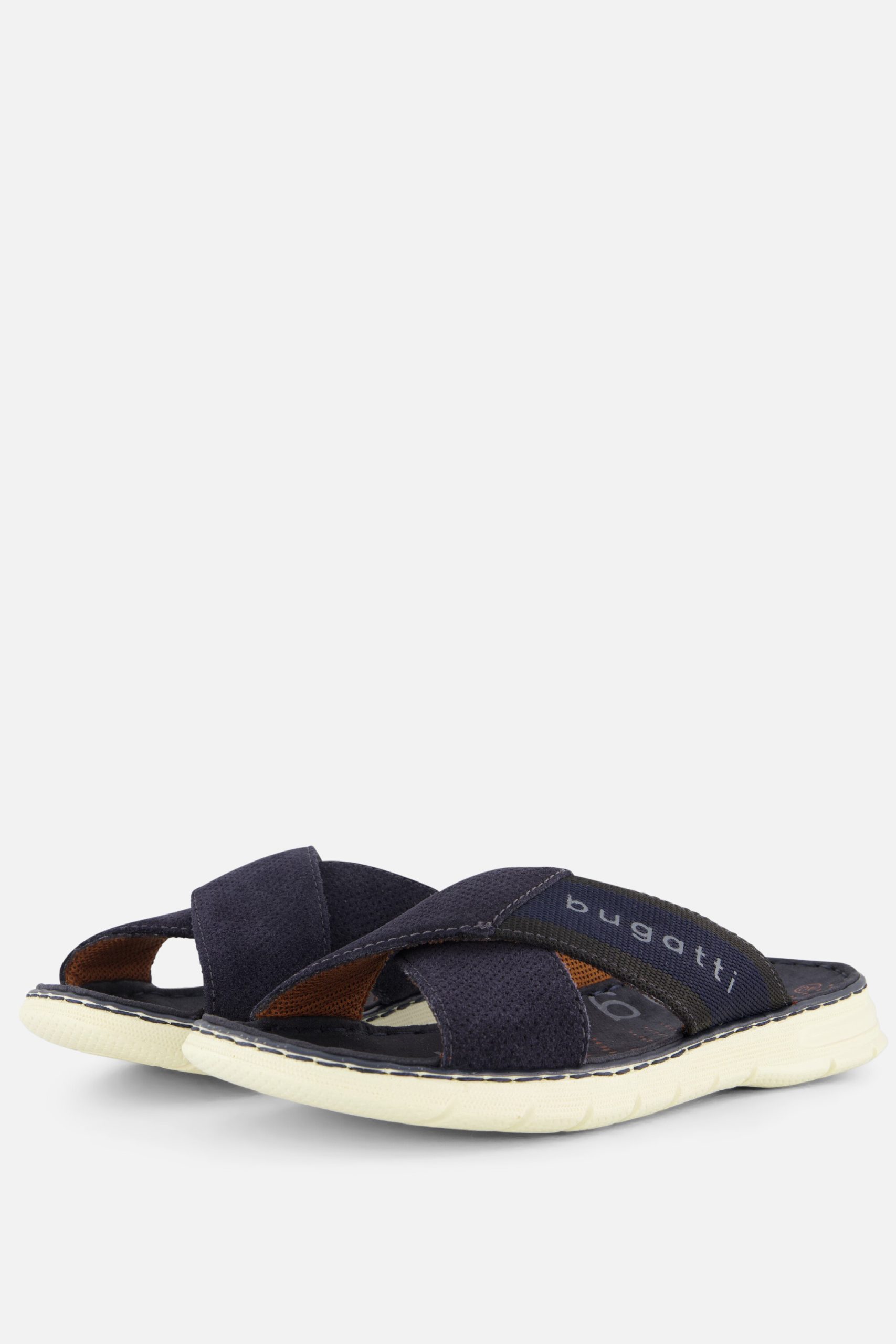 Slippers van lichtgewicht en comfort! Deze Bugatti slippers zijn ideaal voor deze zomer door het voorgevormde voetbed. Dit model heeft bandjes van textiel en een binnenzool van leer. Ook zijn de slippers voorzien van verschillende merkopdrukken en een rubberen loopzool voor optimale grip.