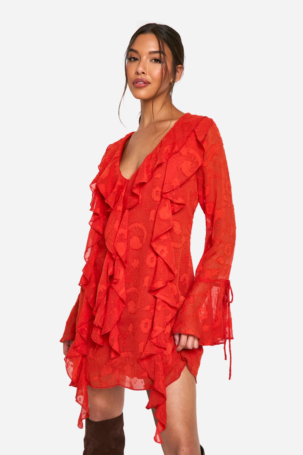 Opvallende mini jurk met paisleyprint en vallende ruches Diepe V-hals voor een gedurfde look Uitlopende belmouwen met vetersluiting bij de manchetten Vloeiende silhouet met een laagjesruches ontwerp Veelzijdig stuk geschikt voor diverse casual gelegenheden Maak indruk op je volgende informele samenzijn met deze opvallende mini jurk met paisleyprint van Boohoo. De vallende ruches geven een speelse en vrouwelijke uitstraling, terwijl de diepe V-hals een gedurfde en verleidelijke look creeert. De uitlopende belmouwen met vetersluiting bij de manchetten dragen bij aan de boho-chique vibe van de jurk. Perfect voor familiereunies of brunch met vrienden, deze jurk is op meerdere manieren te stylen. Combineer voor een relaxte daglook met enkellaarsjes en een crossbody-tasje. Om de look voor de avond aan te passen, kun je de laarzen inruilen voor sandalen met bandjes en wat opvallende oorbellen toevoegen. Het vloeiende silhouet en het laagjesruches ontwerp zorgen voor comfort en bewegingsvrijheid, ideaal om de hele nacht te dansen of te genieten van een casual outdoor evenement. Dit veelzijdige stuk is een must-have voor elke modieuze garderobe. boohoo Dames Burnout Paisley Ruffle Mini Jurk | Russet | Maat: 36