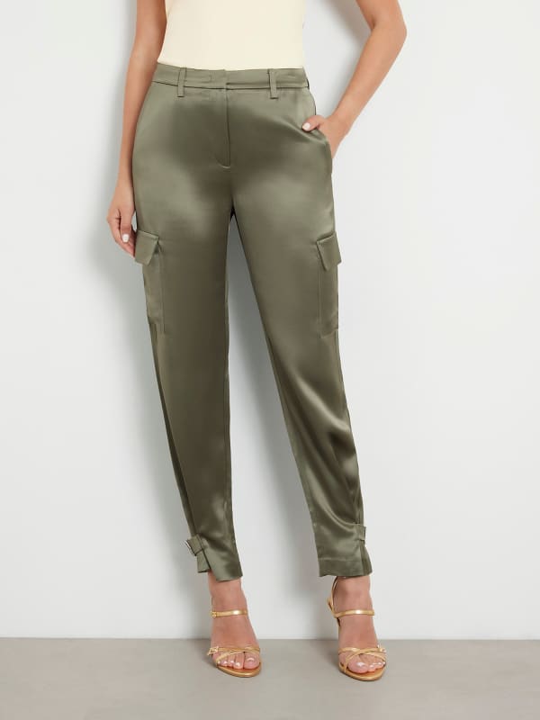 Broek van synthetische stof.Normale taille, rechte pijp.Cargo-stijl.Knoop- en ritssluiting aan de voorkant.Pasvorm regular.STOFTYPE: Satijn.VERSIERING: Cargozak. AFMETINGEN: Op de afbeelding is maat S te zien.Lengte binnenbeen: 74,5 cm/ 29,33 inch.Valt normaal.