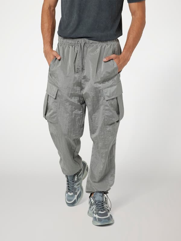 Relaxed fit cargobroek met rechte pijp van gekreukt nylon.Ruime zakken op beide kanten van de broekspijpen.Verstelbare trekkoord op de taille en de manchetten.Normale taille met elastische tailleband.Logo op de voorkant.Het model draagt maat M.Lengte zijkant: 108 cm / 42,5 inch.Zie onze bovenstaande maattabel.