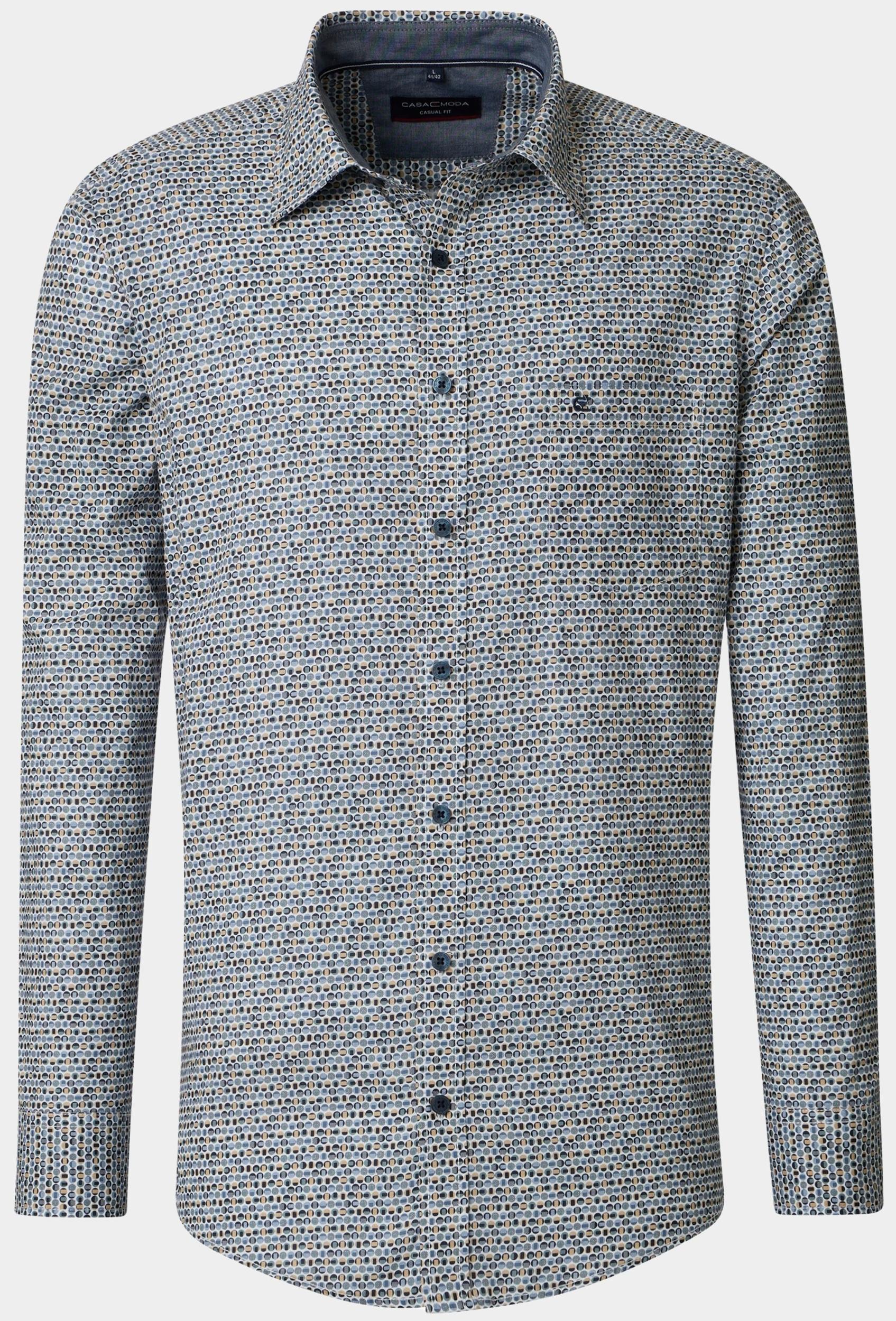 Dit blauwe casual overhemd van Casamoda is het perfecte item voor het komende lente/zomerseizoen. Het overhemd is gemaakt van 100% katoen, waardoor het comfortabel en ademend is. De regular fit zorgt ervoor dat het overhemd mooi aansluit op het lichaam, zonder te strak te zitten. Dit overhemd heeft een cutaway kraag, wat zorgt voor een moderne en stijlvolle uitstraling. Hierdoor is het overhemd zowel geschikt voor informele als formele gelegenheden. Het overhemd kan gewassen worden tot 30°C, waardoor het gemakkelijk te onderhouden is. Met dit blauwe overhemd ben je altijd goed gekleed en klaar voor elke gelegenheid. Combineer het met een chino en nette schoenen voor een formele look, of draag het op een jeans voor een meer casual uitstraling. Bestel dit stijlvolle item vandaag nog en voeg een tijdloos en veelzijdig kledingstuk toe aan je garderobe.