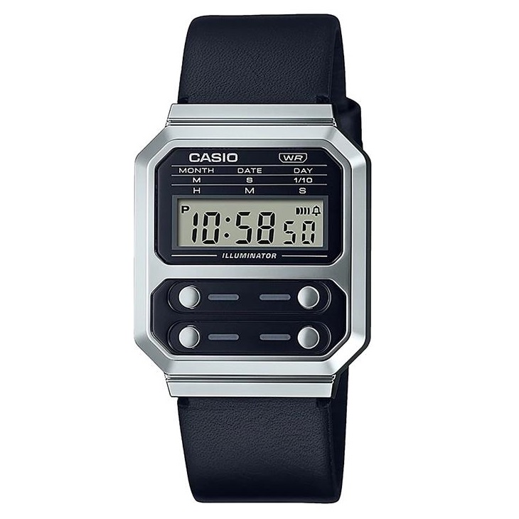 Dit digitale horloge maakt onderdeel uit van de Vintage collectie van Casio. Het horloge is een eerbetoon aan de F-100. Het horloge is zowel door dames als heren te dragen en is kenmerkend door de iconische vier knoppen aan de voorkant. Het Vintage Casio horloge beschikt over een tal van functies, zoals een stopwatch en kalender. Natuurlijk is er ook led-verlichting aanwezig. Afmeting kast: 40.7 × 32.7 × 9.2 mm