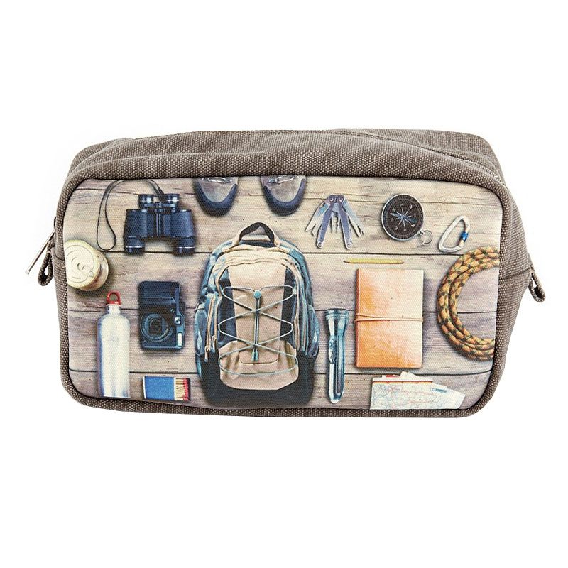 Ruime toilettas voor avontuurlijke mannen die er graag op uit trekken. De toilettas is gemaakt van stevig gecoat katoen en sluit af met een ritssluiting.Afmeting: 25 x 13 x 13 cm