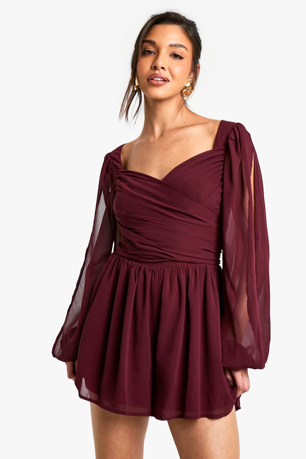 Chiffon Wrap Playsuit met Gespleten Mouwen