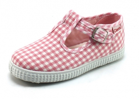 Licht roze met wit geruite canvas/linnen bandschoentje van het merk Cienta 5100703 t-band Ruit. Het merk Cienta biedt een super leuke collectie schoentjes voor de kleine meisjes onder ons. De bandschoentjes sluiten doormiddel van een verstelbare gesp welke weer vastgeklikt wordt met een drukknopje. Cienta komt in de vrolijkste kleuren en met heerlijk geurende zolen! Bestel vandaag nog een paar Cienta bandschoenen online bij Stoute-schoenen.nl ©. De bandschoenen van Cienta hebben twee uitneembare voetbedden. Het leren voetbed is licht voorgevormd. Het stoffen voetbed kan als extra opvulling gebruikt worden wanneer de bandschoentjes nog iets te groot zijn. Uiteraard kan je beiden voetbedden separaat gebruiken.