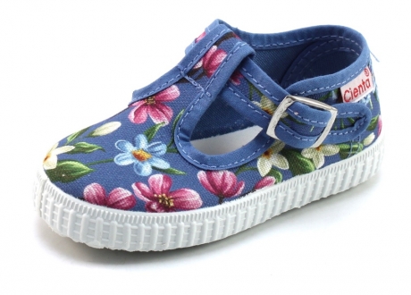 Vrolijke bloemen op grijs/blauw kleurige canvas/linnen bandschoentje van het merk Cienta 5102390 t-band bloem. Het merk Cienta biedt een super leuke collectie schoentjes voor de kleine meisjes onder ons. De bandschoentjes sluiten doormiddel van een verstelbare gesp welke weer vastgeklikt wordt met een drukknopje. Cienta komt in de vrolijkste kleuren en met heerlijk geurende zolen! Bestel vandaag nog een paar Cienta bandschoenen online bij Stoute-schoenen.nl ©. De bandschoenen van Cienta hebben twee uitneembare voetbedden. Het leren voetbed is licht voorgevormd. Het stoffen voetbed kan als extra opvulling gebruikt worden wanneer de bandschoentjes nog iets te groot zijn. Uiteraard kan je beiden voetbedden separaat gebruiken.