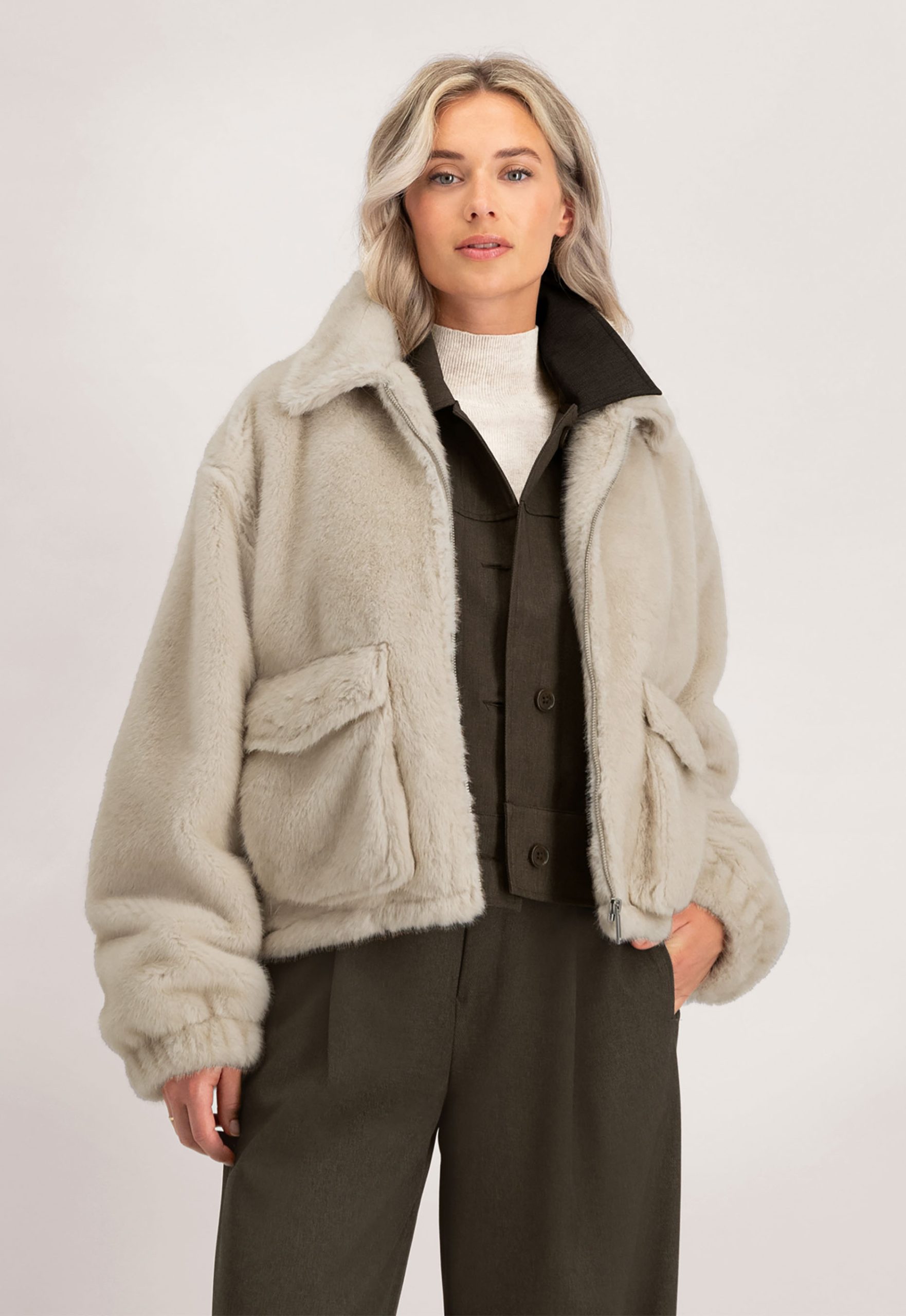 Dit is het W25_35 Reese Jack van het merk Circle of Trust. De jas is uitgevoerd in een warme bouclé stof. De jas heeft een loose fit, een ritssluiting en is voorzien van klepzakken en een voering voor extra draagcomfort. Verder heeft het item elastische boorden bij de mouwen.
