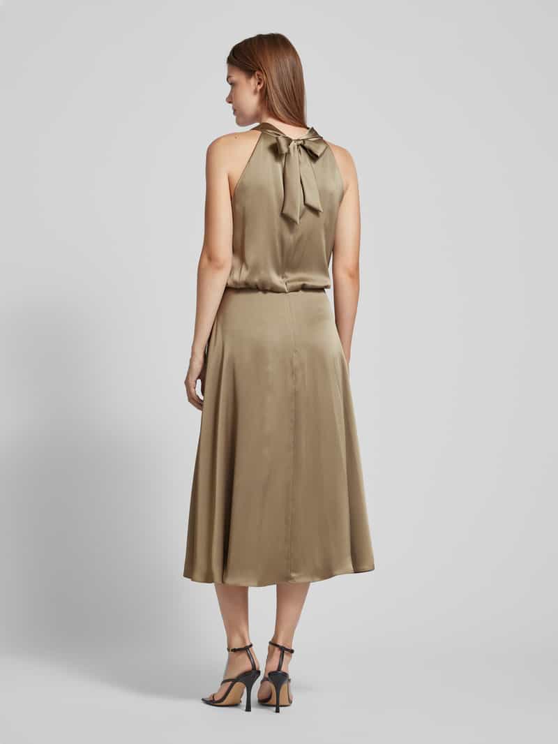 Cocktailjurk van V by Vera Mont;Materiaalmix met stretch;Getailleerd model;Midi-jurk;Halter;Naadritssluiting aan de achterkant;Ruglengte bij maat 36: 115 cm;Borstomvang bij maat 36: 45 cm