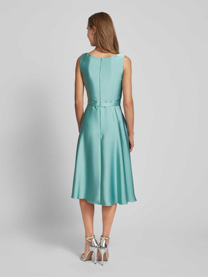 Cocktailjurk van VERA MONT;Look: effen;Lengte: Midi;Hals: Cascade;Pasvorm/model: getailleerd;Details: Taillepas, platte plooien;Kraagmodel: zonder kraag;Sluiting: naadritssluiting aan de achterkant;Mouwvorm: mouwloos;Materiaalverwerking: Satijn;Totale lengte bij maat 38: 106 cm;Borstomvang bij maat 38: 42,5 cm