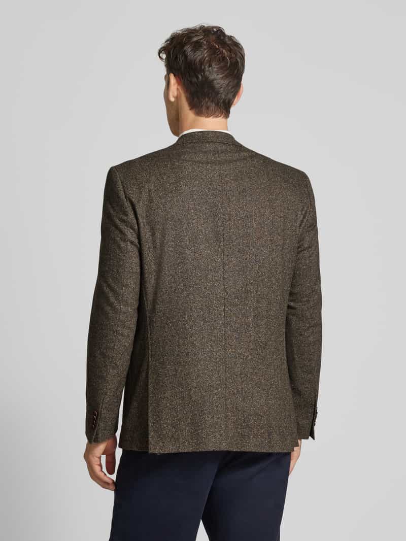 Herencolbert van Carl Gross;Model ‘Tedrick’;Look: mêlee;Pasvorm/model: recht;Motief: fijn geweven motief;Kraagmodel: Reverskraag;Sluiting: Knoopsluiting met twee knopen;Mouwvorm: lange mouwen;Zakken: Paspelzak op de borst, opgestikte zakken;Materiaal: Elastische lanawolmix met zijde;Ruglengte bij maat 50: 75 cm;Schouderbreedte bij maat 50: 48 cm;Mouwlengte bij maat 50: 63 cm