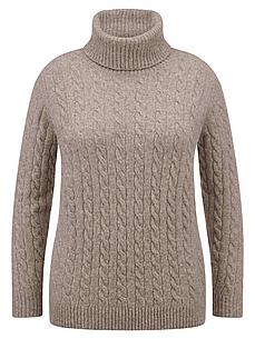 Coltrui van ANNA AURA met een afstaande kraag en lange mouwen. Zacht en aangenaam warm. Hoogwaardige garenmix van 44% wol, 24% polyamide, 18% viscose, 11% jak, 3% elastan Met kabelmotief. Lengte in maat 42 ca. 68 cm. Machinewasbaar. speciale fijnwas tot 30°. chloorbleken niet mogelijk. koud strijken. chemische reiniging. drogen in de droger niet mogelijk. 40, 42, 48, 50, 52