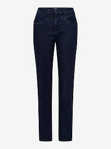 ‘Comfort Fit’-jeans van RAPHAELA BY BRAX. Model CAREN. De elastische band met riemlussen zorgt voor een prettige pasvorm. De sluiting bestaat uit een knoop en ritssluiting. Voorzien van praktische steekzakken en achterzakken, die voldoende bergruimte bieden. De denimkwaliteit is modellerend en gemakkelijk in onderhoud. Bijzondere kenmerken, zoals borduursels, studs, heupstuk, figuurnaden en de doorgestikte zoom, geven deze jeans een uniek karakter. Zonder riem. Van 82% katoen, 12% lyocell, 5% elastomultiëster, 1% elastan. Binnenbeenlengte in normale maten ca. 80 cm, in korte maten ca. 74 cm. Voetwijdte ca. 36 cm. Machinewasbaar. fijnwas tot 30°. chloorbleken niet mogelijk. koud strijken. niet chemisch te reinigen. drogen in de droger niet mogelijk. 18, 19, 20, 21, 22, 23, 24, 36, 38, 40, 42, 44, 46, 48, 50, 52