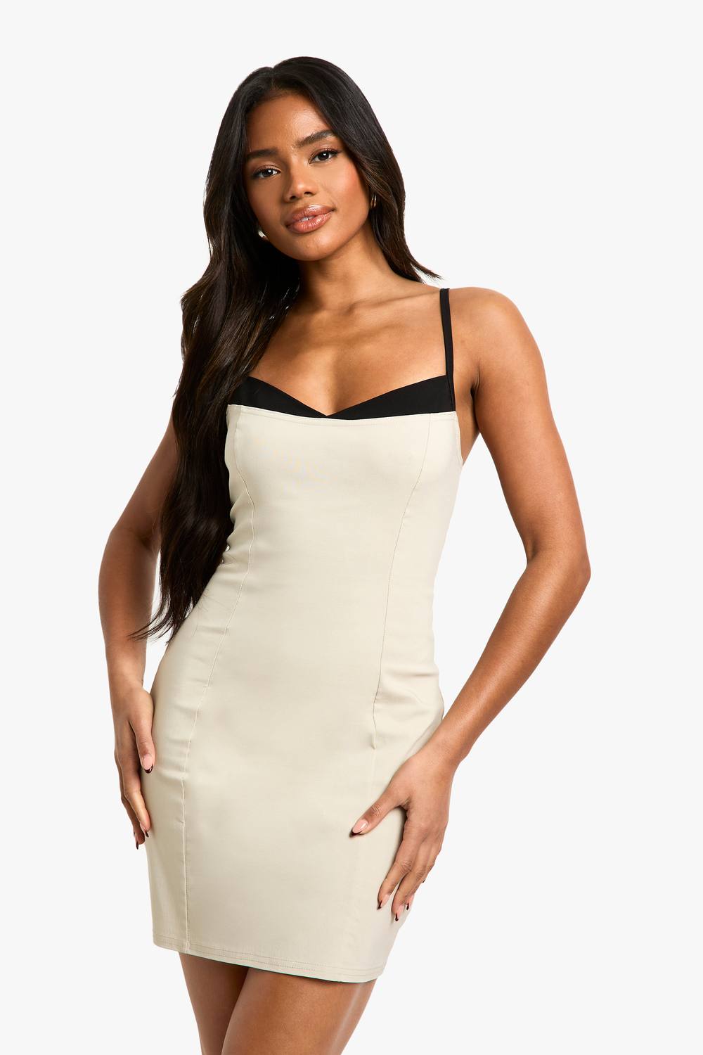 Nauwsluitende bengaline stof voor een strakke silhouet Opvallende contrast-hartvormige halslijn voor extra allure Verstelbare spaghetti-riemen voor een op maat gemaakte pasvorm Mini lengte, perfect om je benen te tonen Veelzijdig ontwerp geschikt voor diverse avondgelegenheden Maak een statement tijdens je volgende avondje uit met deze opvallende minidress van Boohoo. De aansluitende bengaline stof vormt zich naar je rondingen, terwijl de contrasterende hartvormige halslijn een vleugje verfijning toevoegt. Perfect voor de modebewuste vrouw die graag de aandacht trekt, is deze jurk ideaal voor een avondje stappen, cocktails met vriendinnen of een romantische date. Combineer hem met sandalen met riempjes en een clutch voor een klassieke look, of geef wat edge met chunky laarzen en een leren jas. De verstelbare riemen zorgen voor een comfortabele pasvorm, zodat je vol vertrouwen de nacht kunt dansen. Of je nu de stad intrekt of geniet van een drankje in een trendy bar, dit veelzijdige kledingstuk wordt ongetwijfeld een favoriet in je feestoutfit. boohoo Dames Contrast Insert Bengaline Mini Jurk | Stone | Maat: 40