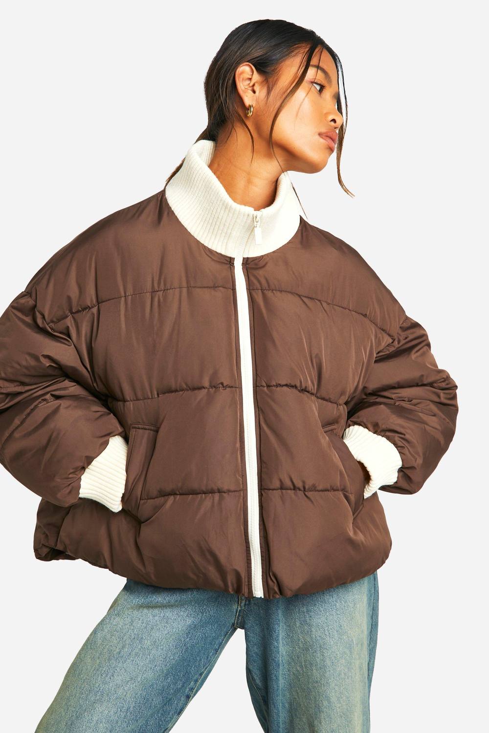 Contrasterende Geribbelde Pufferjas