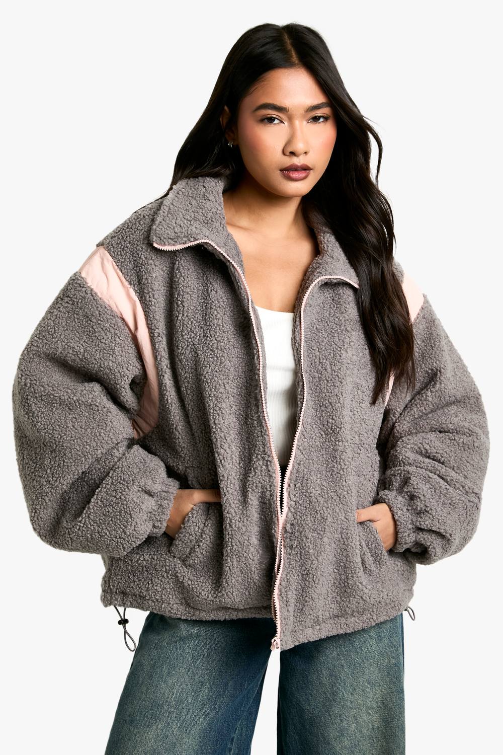 Knusse borgstof voor ultiem comfort en warmte Contrasterende nylonpanelen voor een sportieve, moderne twist Oversized pasvorm voor een ontspannen, trendy silhouet Praktische zijzakken voor essentiele spullen Volledige ritssluiting voor gemakkelijk aantrekken Omarm de samensmelting van comfort en stijl met deze opvallende teddyjas. De zachte borgstof biedt ongeevenaarde knusheid, terwijl de contrasterende nyloninzetstukken een eigentijdse touch geven aan dit casual basismodel. Perfect voor die koude dagen waarop je een statement wilt maken, combineert deze jas moeiteloos met wijde jeans en sneakers voor een relaxte look. Draag hem over een eenvoudig wit T-shirt of een dikke gebreide trui voor veelzijdige stylingopties. Of je nu op weg bent naar een informele lunch met vrienden of weekendse boodschappen doet, deze jas houdt je warm en stijlvol. De oversized pasvorm maakt eenvoudig laagjes dragen mogelijk, wat het een ideale keuze maakt voor onvoorspelbaar Brits weer. Voeg een crossbodytas en opvallende oorbellen toe om je outfit compleet te maken, en je bent klaar om elke informele gelegenheid met vertrouwen aan te gaan. boohoo Dames Contrasterende nylonpaneel-teddyjas | Grey | Maat: 36