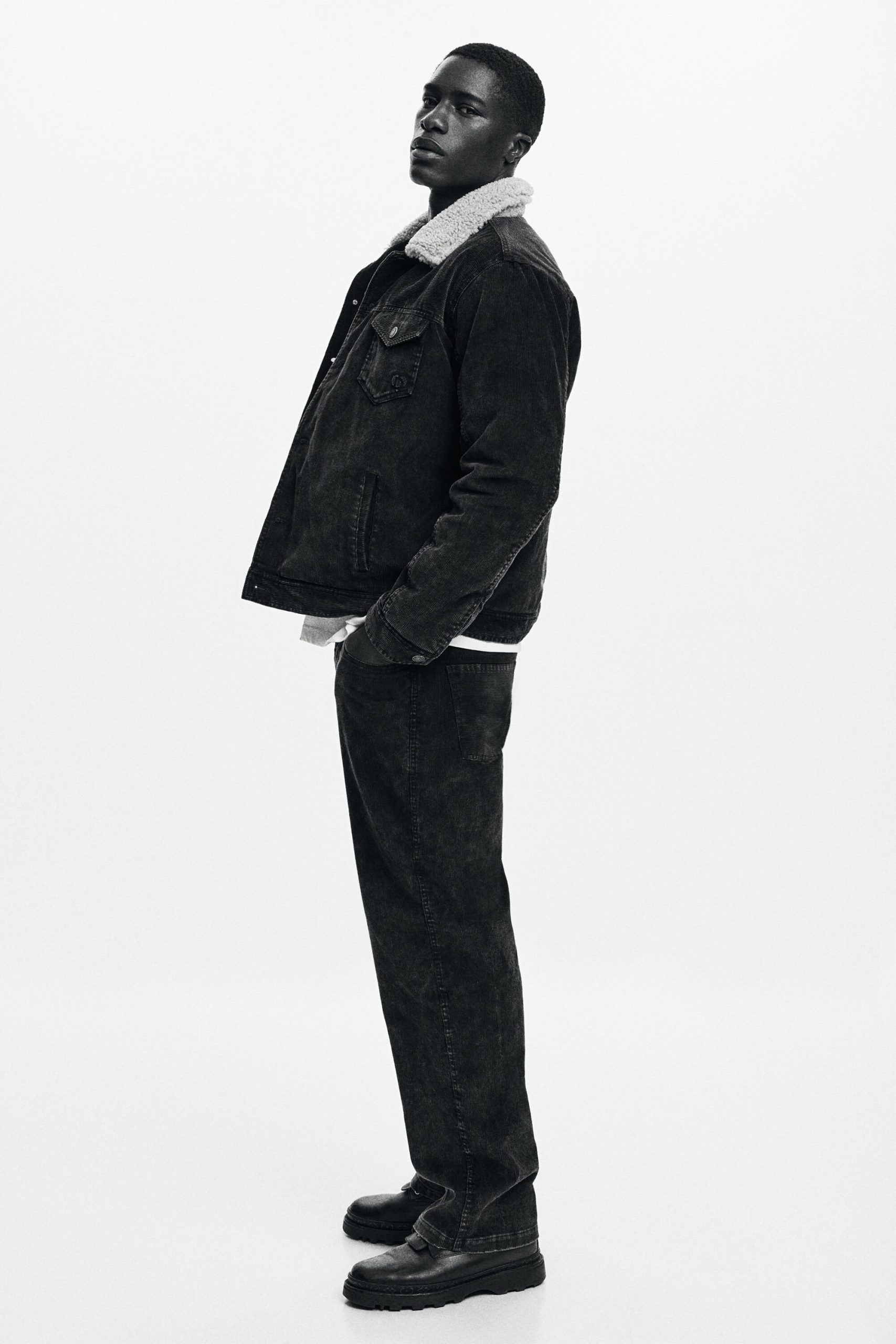 Langarmjack in corduroy stof met knoopsluiting aan de voorkant, voorzakken en kraag met schapenvacht effect.