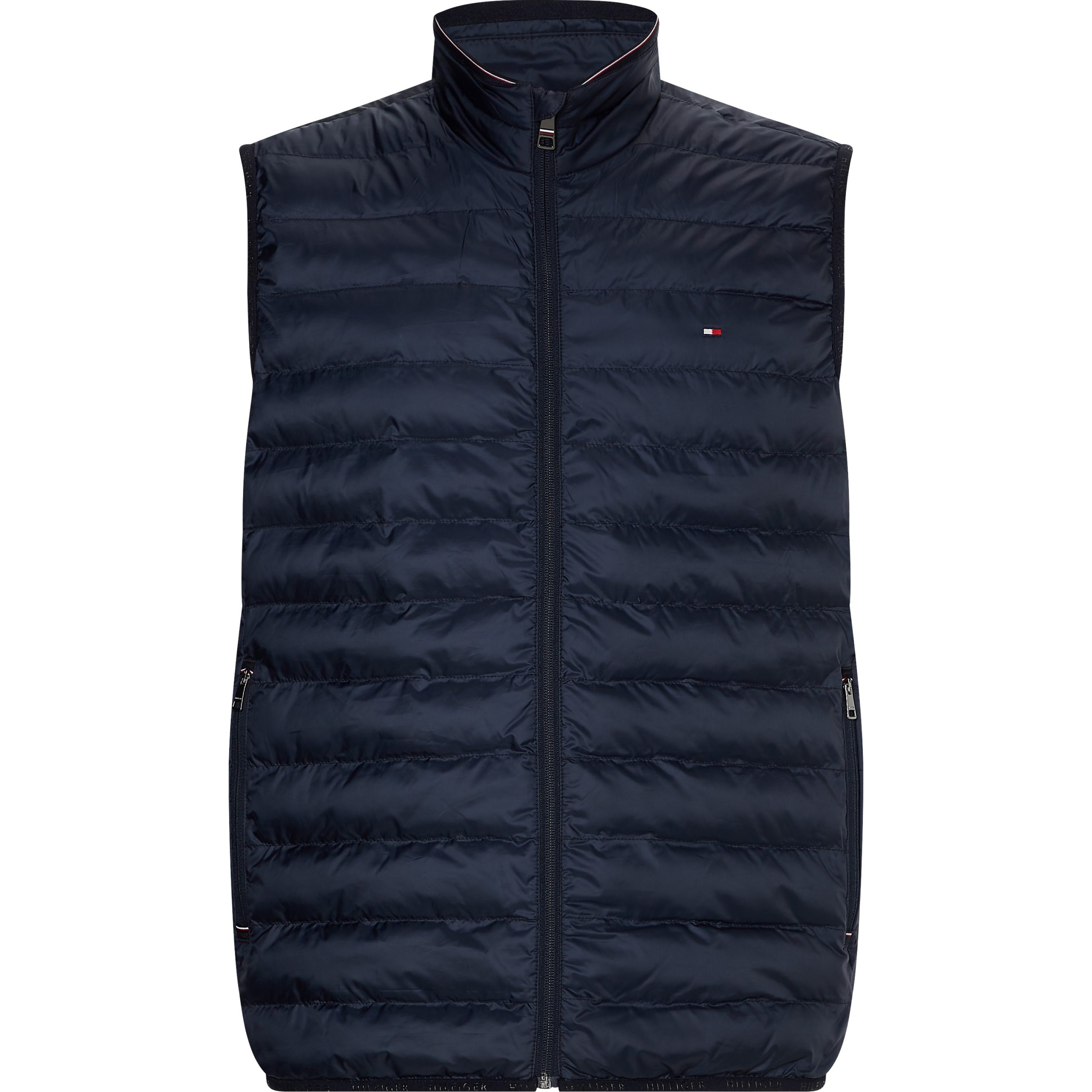 Heren jas van het merk Tommy Hilfiger in de kleur blauw. De jas is gemaakt van gerecycled polyester en heeft een normale pasvorm. Op de borst zit het iconische Tommy logo.