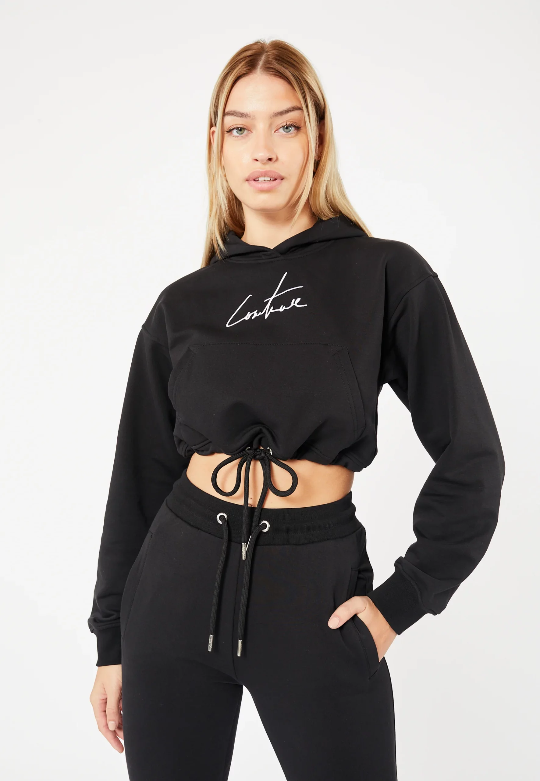 Couture Club Essentials Signature Tie Hem Hoodie Dames Zwart