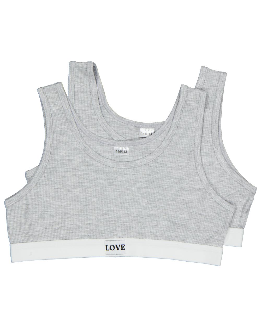 Deze grijze croptop is gemaakt van een zachte ribstof met 95% viscose en 5% elastaan. De brede band aan de onderzijde is voorzien van de tekst 'LOVE'. Door de elastische samenstelling sluit de top comfortabel aan. De set bestaat uit twee stuks en is geschikt voor jongens en meisjes. Ideaal om te dragen onder kleding of tijdens sportieve activiteiten.
