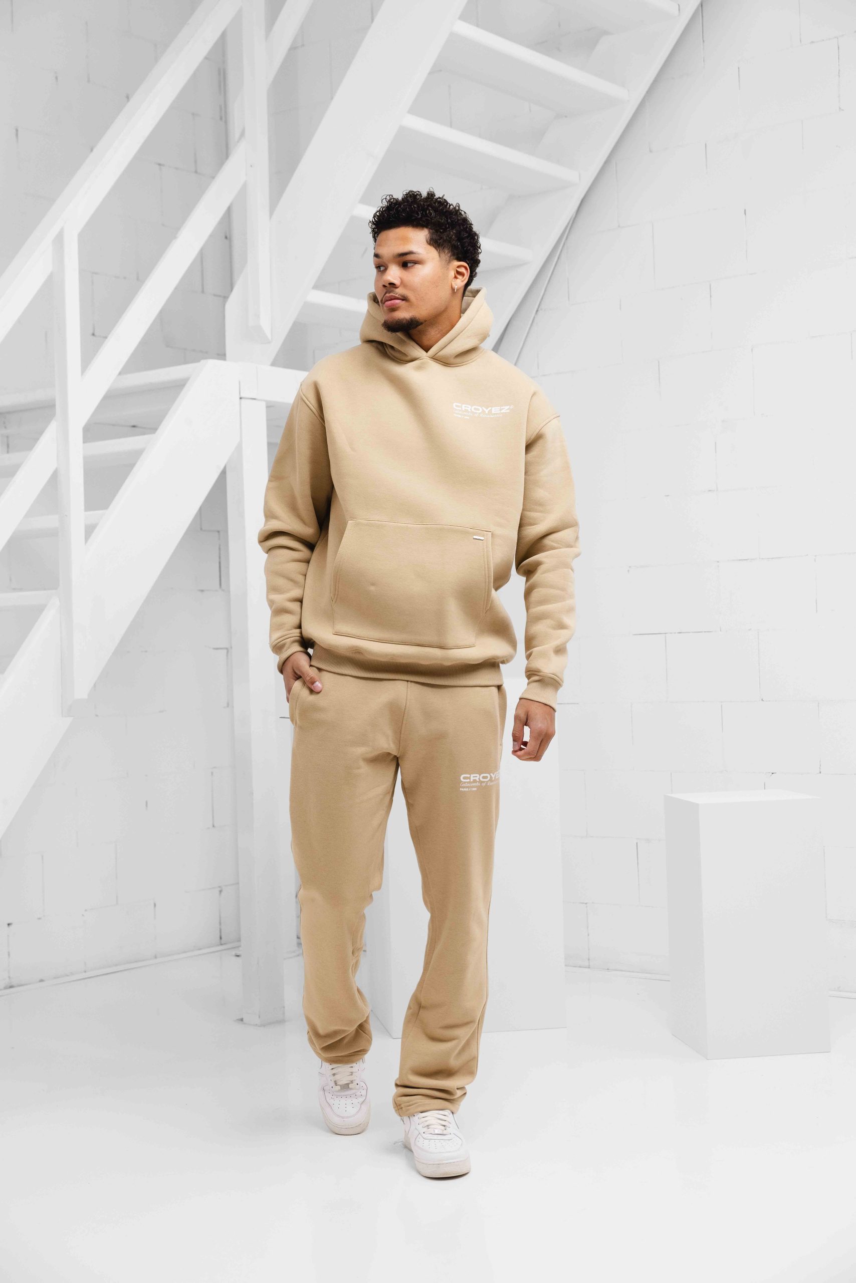 Het Croyez Atelier Trainingspak voor heren in de kleur beige is een must-have voor het komende herfst/winterseizoen. Dit trainingspak heeft een capuchon en lange mouwen, waardoor het perfect is voor koudere dagen. De pasvorm is oversized, wat zorgt voor een comfortabele en relaxte uitstraling. Dit trainingspak is gemaakt van 70% katoen en 30% polyester, wat zorgt voor een zachte en warme stof. Het effen patroon zorgt voor een tijdloze uitstraling, terwijl de elastische band en koordsluiting zorgen voor een perfecte pasvorm. Met een kangoeroezak en twee buitenzakken biedt dit trainingspak voldoende opbergruimte voor al je essentials. Of je nu gaat sporten of gewoon lekker wilt relaxen, met het Croyez Atelier Trainingspak ben je altijd stijlvol en comfortabel gekleed.