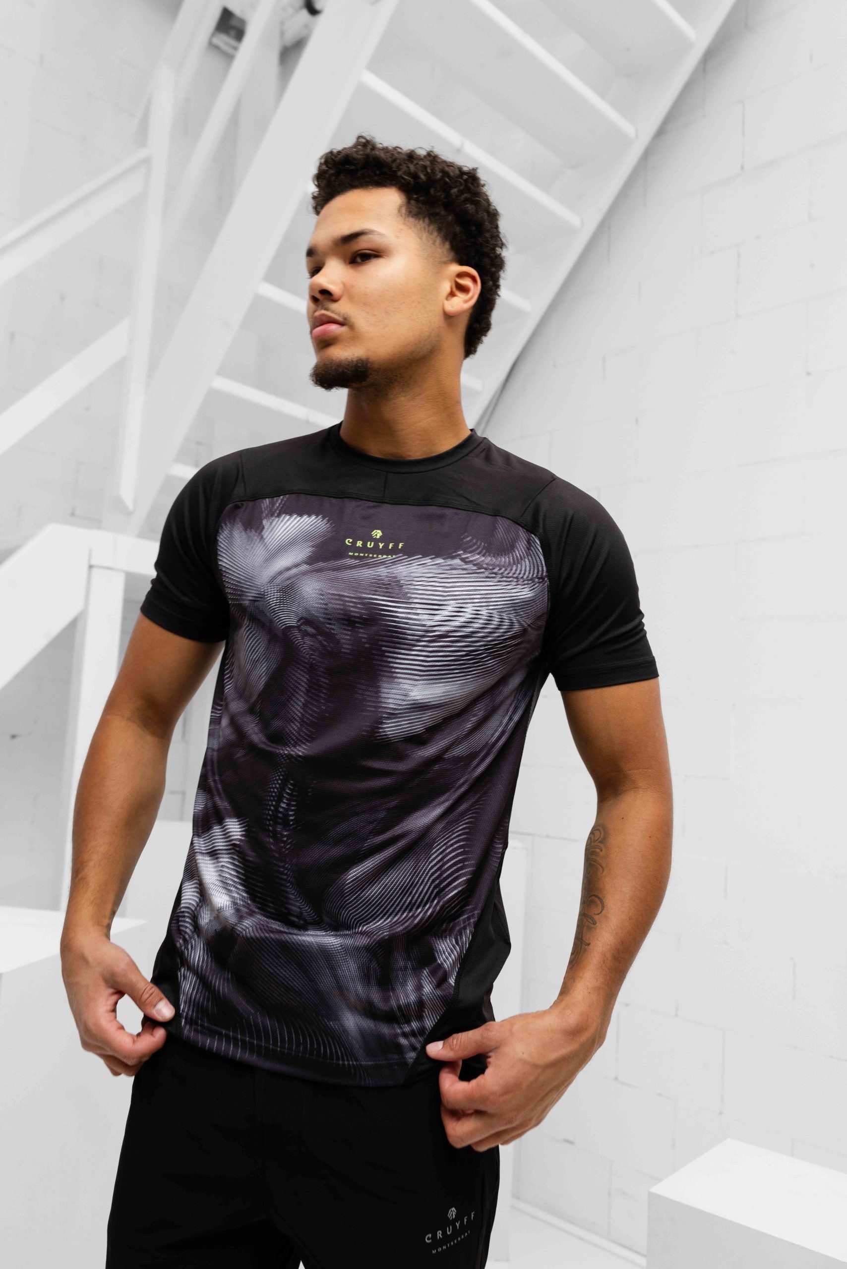 Het Cruyff Montserrat Omega T-Shirt voor heren is een must-have item voor het komende lente/zomerseizoen. Dit stijlvolle shirt heeft een ronde hals en korte mouwen, perfect voor warme dagen. De zwarte kleur geeft een moderne uitstraling en passen bij elke outfit. Het shirt is gemaakt van hoogwaardig materiaal (92% Polyamide, 8% Elastaan) wat zorgt voor een comfortabele pasvorm. De logoprint en print op de voorkant geven een trendy twist aan het geheel. Met de regularfit pasvorm is dit shirt geschikt voor elke man die er modieus uit wil zien. Kies voor kwaliteit en stijl met het Cruyff Montserrat Omega T-Shirt.