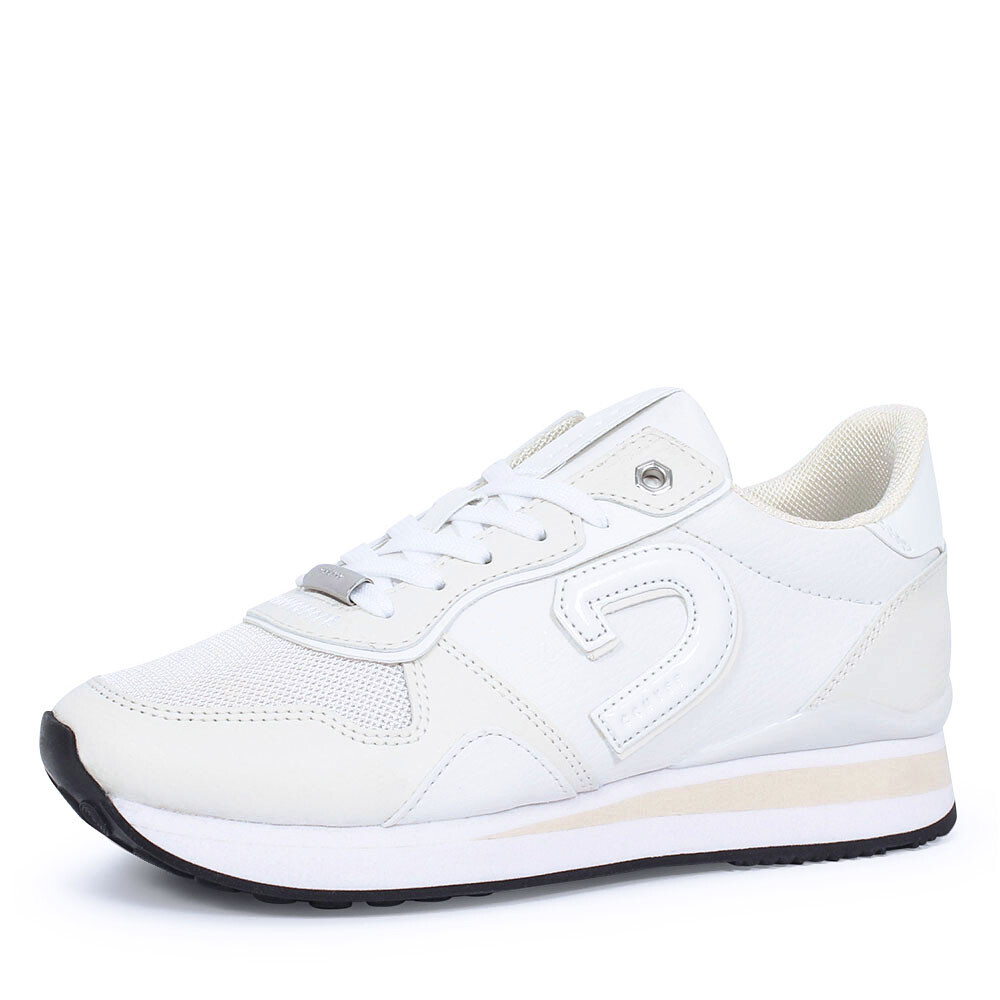 Deze sportieve PARKRUNNER sneaker is uitgevoerd in een combinatie van wit leer en ademend mesh stof, afgewerkt met glanzende panelen voorzien van cruyff branding. Het binnenwerk is comfortabel gevoerd met zacht textielstof, het voorgevormde voetbed is uitneembaar. Opvallend zijn de zilverkleurige accenten en de rubberen zool met het kenmerkende noppenprofiel.