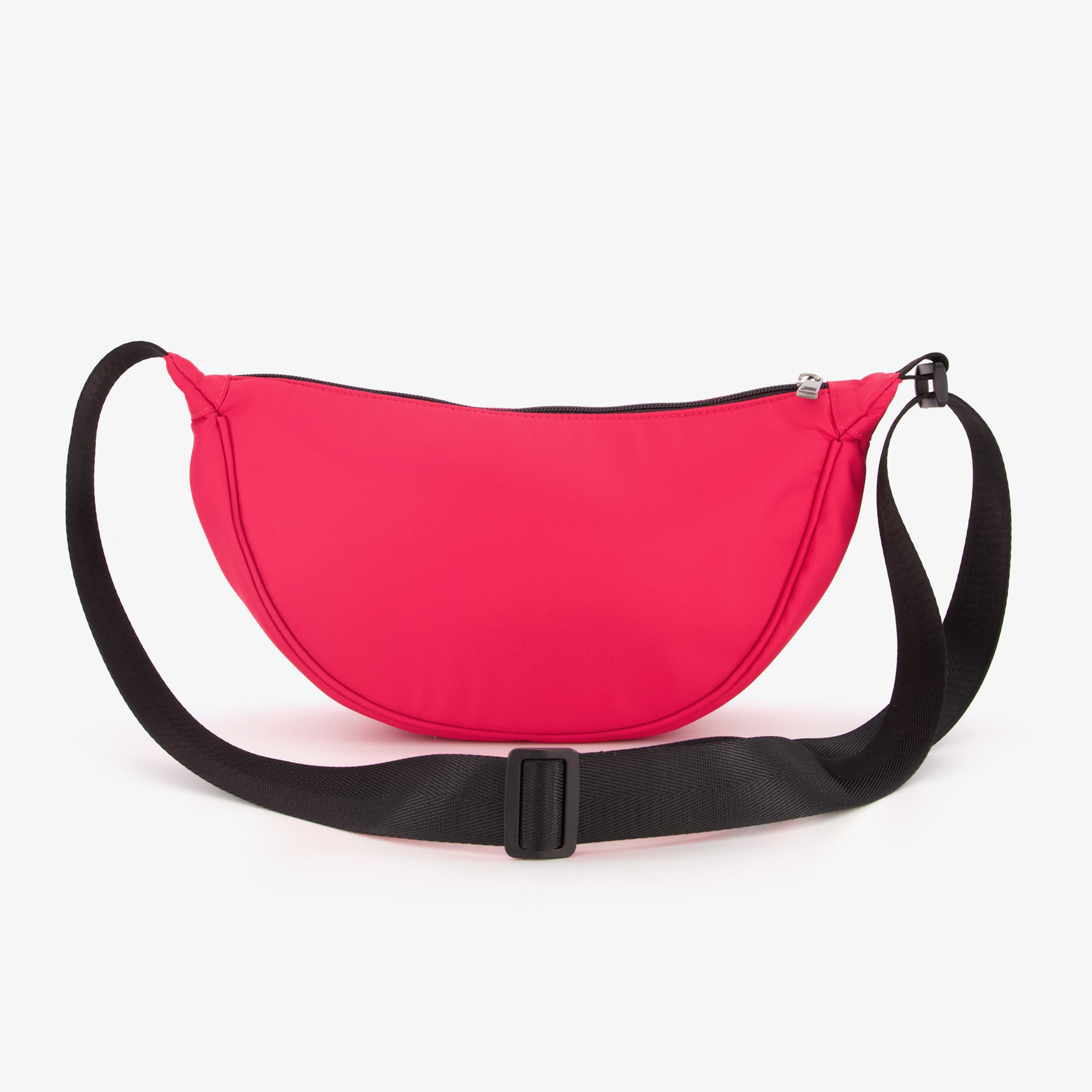 Roze crossbody tas met zwarte band voor dames. Voorzien een hoofdvak met ritssluiting en een lange, verstelbare schouderband. Afmetingen: 38 x 37 x 17 cm. Gemaakt van nylon.
