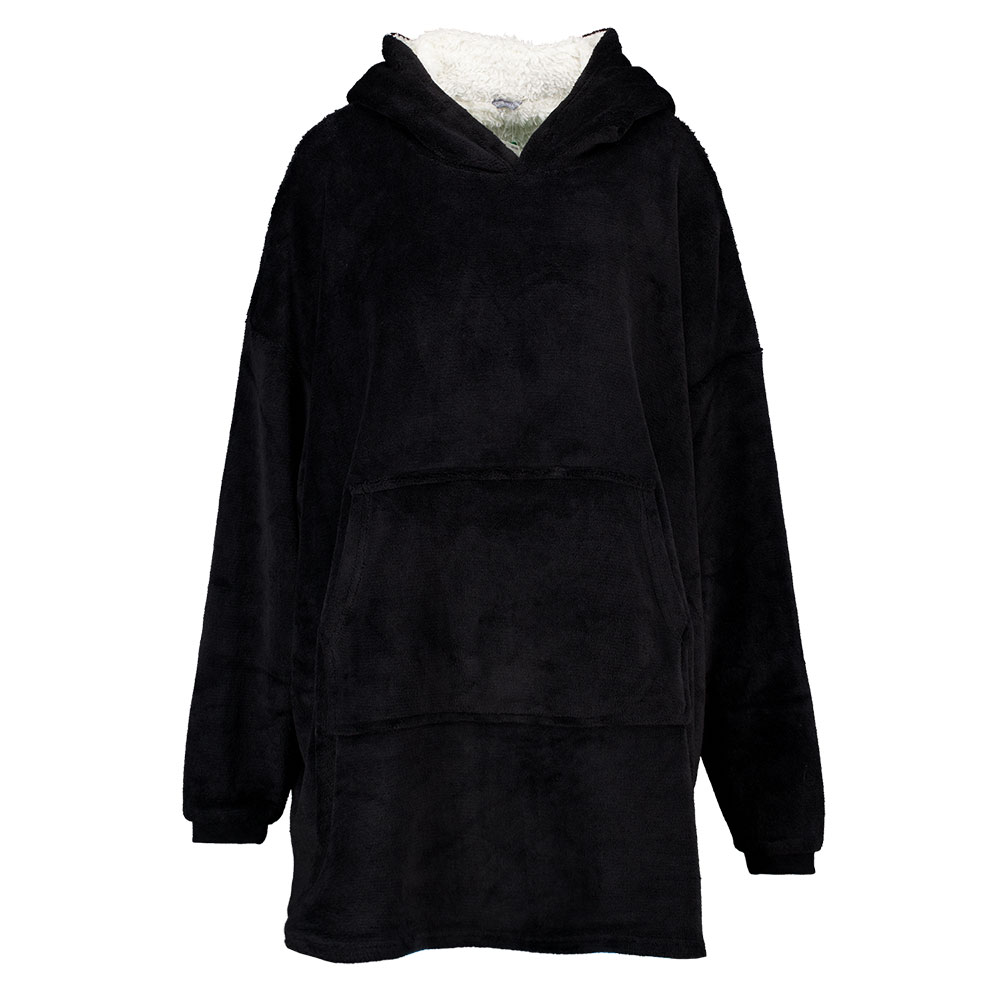 Deze huggle hoodie is extra groot en gevoerd met coral fleece. Coral fleece is dikker dan de meeste andere soorten fleece, waardoor het nog zachter en warmer is. Ook de capuchon is gevoerd en aan de voorkant heeft de huggle een kangoeroezak. De buitenkant van deze plaid met mouwen is van extra zacht sherpa en de stof bestaat voor 100% uit polyester. Een aanwinst voor de winteravonden, voor de laagst mogelijke prijs.