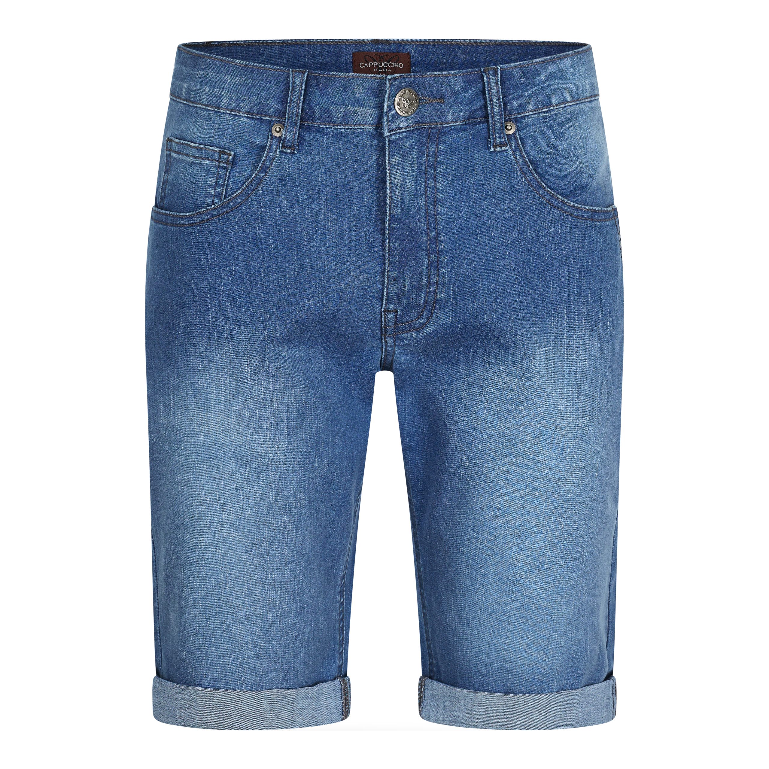 Cappuccino Italia denim short voor heren. De short is gemaakt van katoen en elastaan, en heeft een normale pasvorm. De elastaan zorgt voor een lekkere rek in de stof. De short heeft 2 steekzakken en 2 kontzakken.